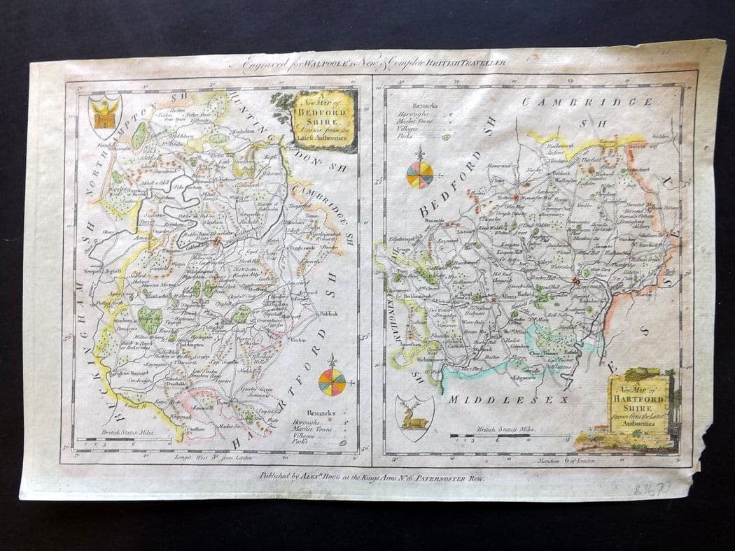 Walpoole & Hogg 1784 Hand Col Map Bedfordshire & Hertfordshire