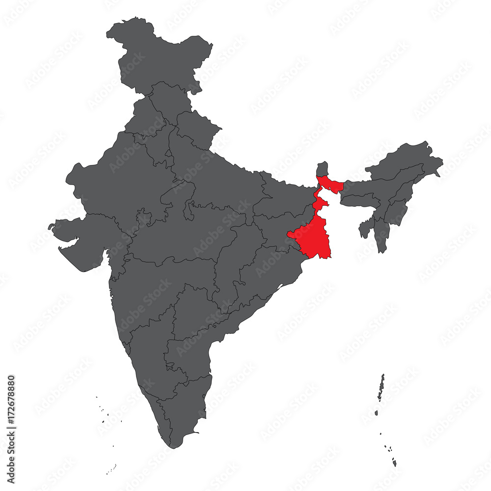 West Bengal red on gray India map vector Stock Vector | Adobe Stock